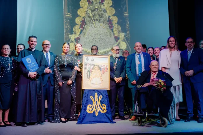 La velada arrancó con una cuidada puesta en escena, con proyección de imágenes de la Virgen del Rocío y música de fondo, en un ambiente que evocaba la romería. Uno de los momentos más llamativos fue la entrada del pitero con la sala a oscuras, que dio paso a un inicio solemne, seguido de una oración conjunta con el público en pie.