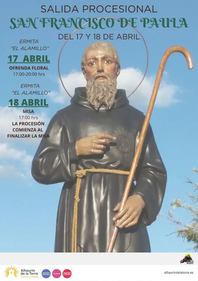 El sábado 18 de abril, la festividad continuará con la misa en honor a San Francisco de Paula, que se celebrará a las 17:00 horas en la misma ermita. Al finalizar la ceremonia, se realizará la solemne procesión, un recorrido que permitirá a los asistentes compartir un momento de recogimiento y devoción, manteniendo viva la tradición de la barriada. Como cada año, en el recorrido procesional participará la Banda Municipal de Música de Alhaurín de la Torre que dirige Alfonso Ortega.