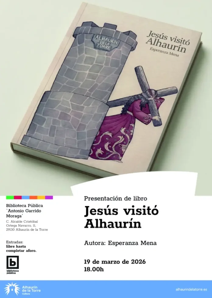 La Biblioteca Municipal ‘Antonio Garrido Moraga’ de Alhaurín de la Torre acogerá este próximo jueves, 19 de marzo, a partir de las 18.00 horas la presentación del libro ‘Jesús visitó Alhaurín’, escrito por la autora local Esperanza Mena. La cita está organizada por la Concejalía de Cultura del Ayuntamiento que dirige Manuel López y la entrada es libre.